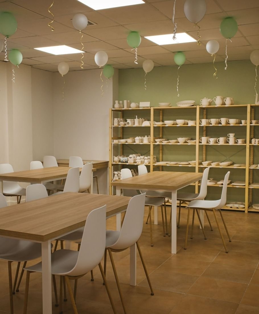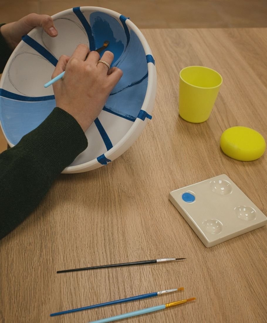 En nuestro taller de pintura de cerámica, eliges la pieza que más te inspire —tazas, platos, cuencos u objetos decorativos— y la pintas a tu manera.